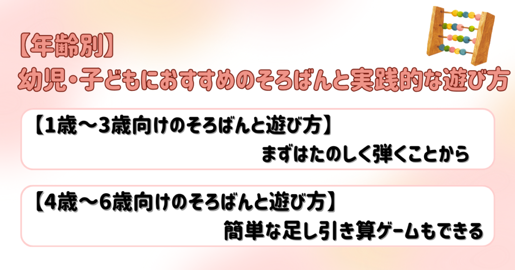 ここでは、私の実体験を基に幼児・子どもにおすすめのそろばんを年齢別に紹介し、楽しくできる遊び方についても解説していきます。